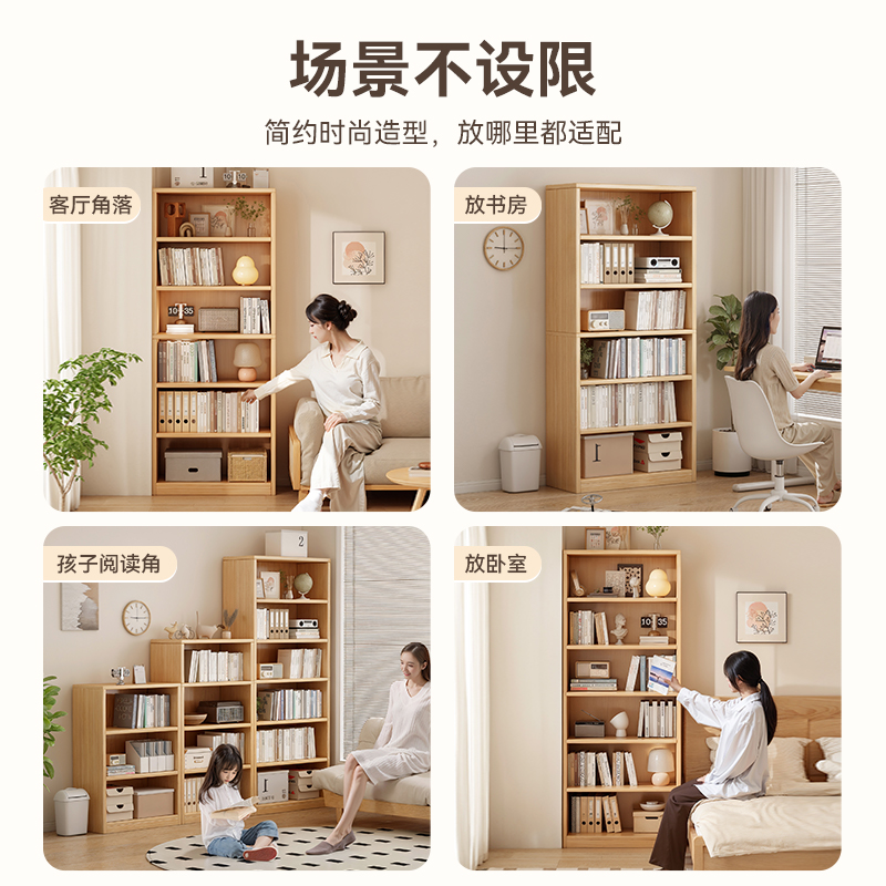 简易书架落地靠墙客厅置物架分层收纳架储物柜子一体简约家用书柜