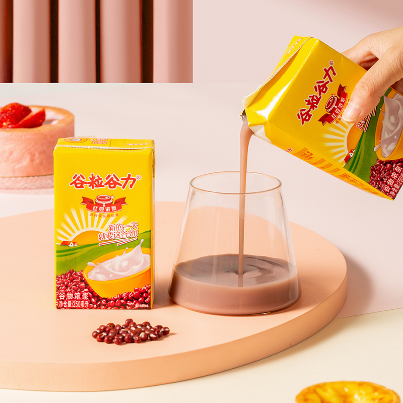 谷粒谷力红豆浓浆早餐奶植物蛋白饮料250ml*16盒整箱礼盒装批发