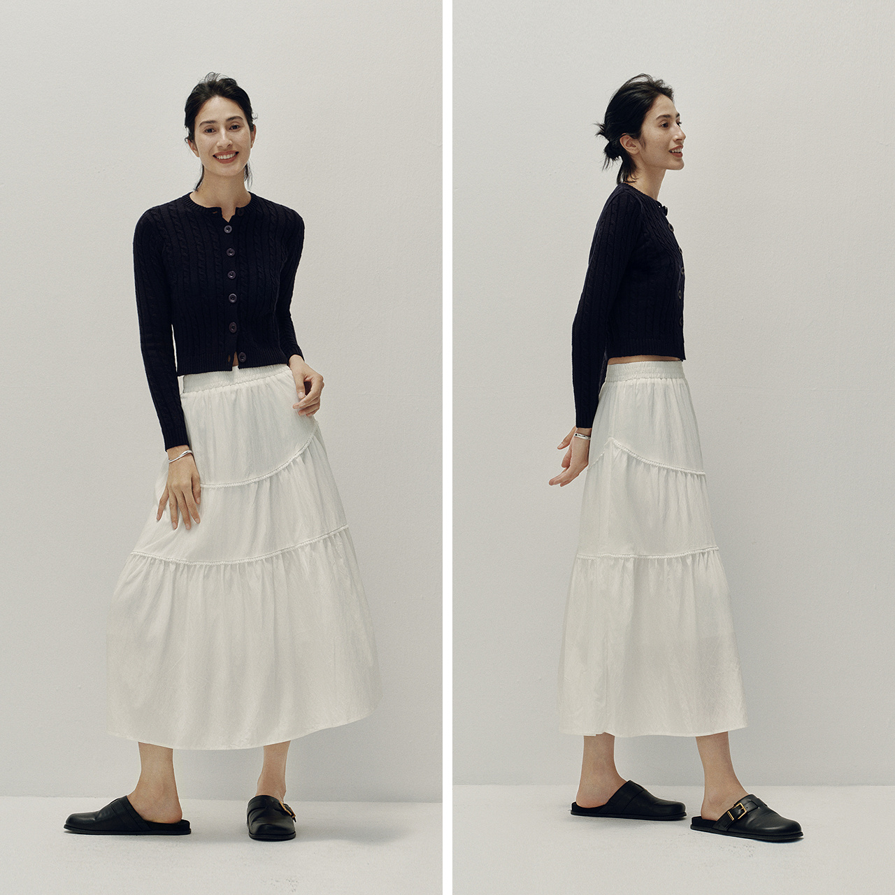 [商场同款]森马半身裙女松紧腰慵懒2025新款夏季肌理A字裙山本风