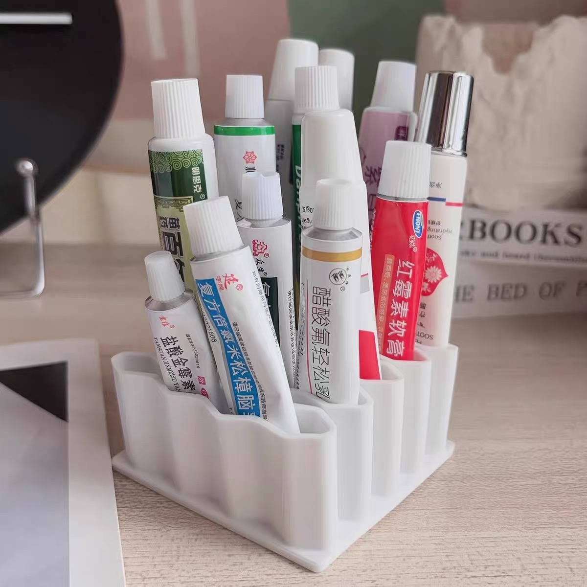 药膏收纳架分格管状药整理神器桌面放胶水条状药品软膏药物置药盒