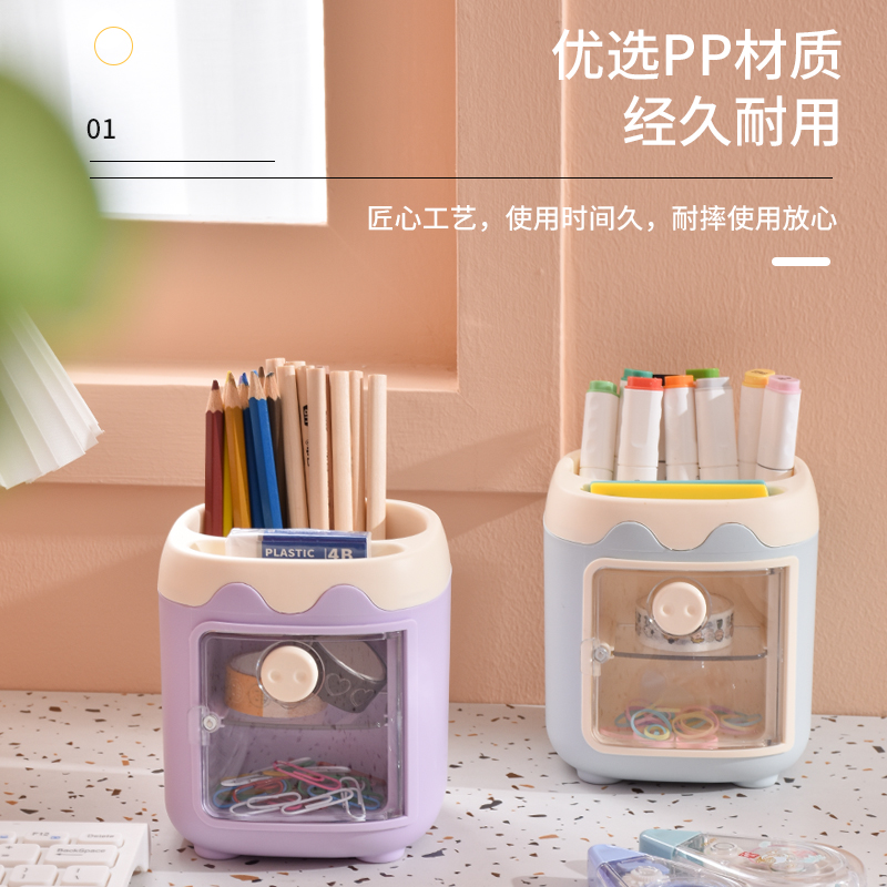 小猪笔筒可爱儿童女孩小学生桌面文具收纳盒三丽鸥大容量多功能书桌笔盒放装插笔的冰箱笔桶女生创意摆件