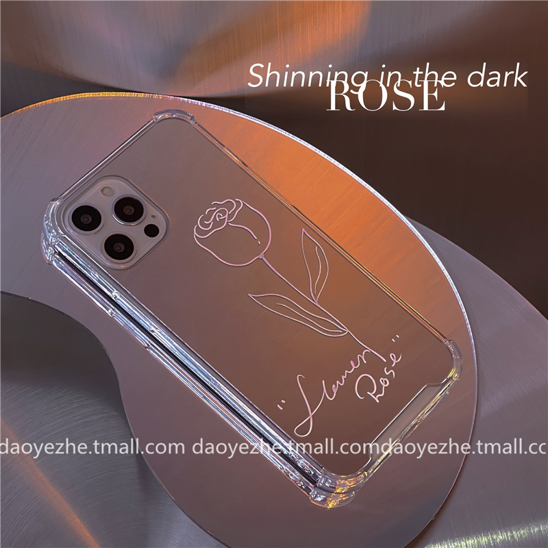 ins简约线条玫瑰镜面oppoReno14手机壳Reno13/12新款FindX8S+/11补妆镜子Reno9/X6小众10/5K硅胶7创意8pro+女