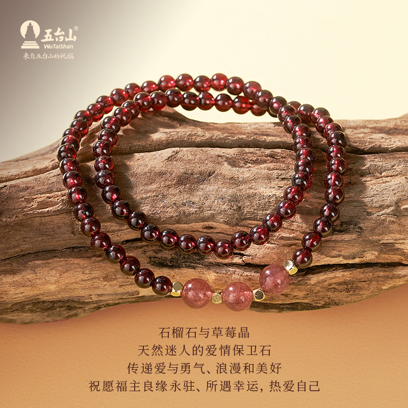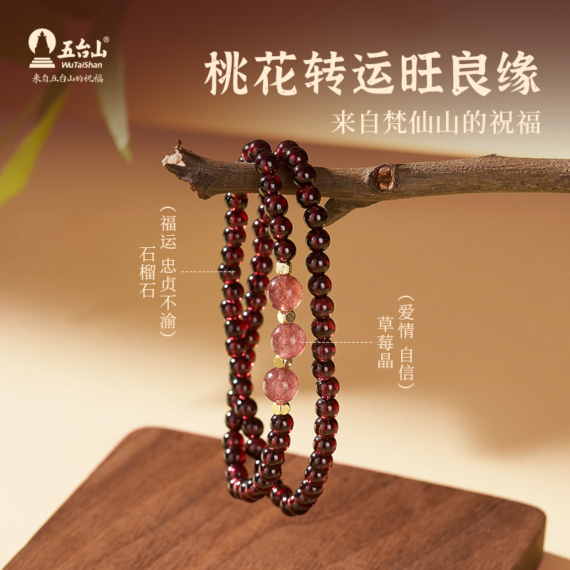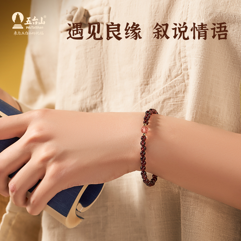 五台山天然石榴石双圈手串草莓晶转运珠手串珠新中式招桃花手链物