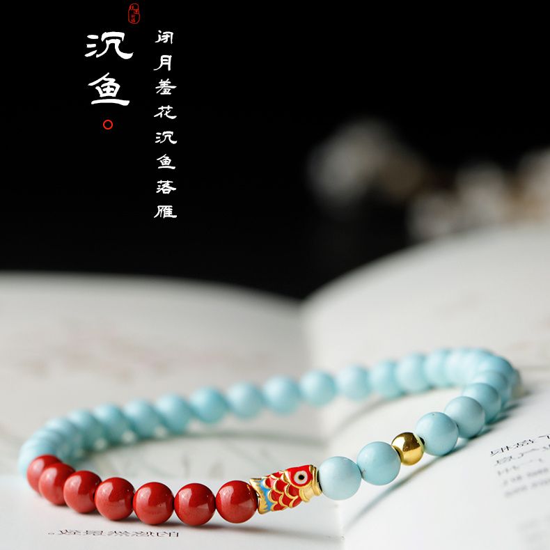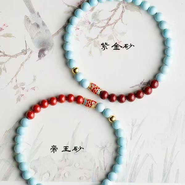 绿松石手串朱砂天然玉石串珠新中式国风好运手链女锦鲤转运珠锦乐