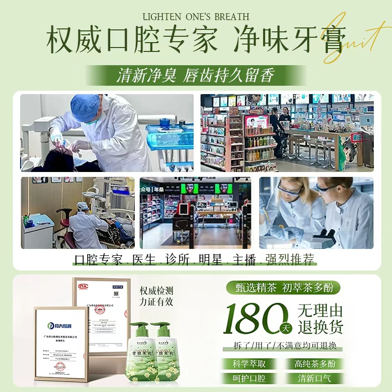 牙膏口气清新去口臭否美白去黄烟渍成人正品官方旗舰店按压式瓶装