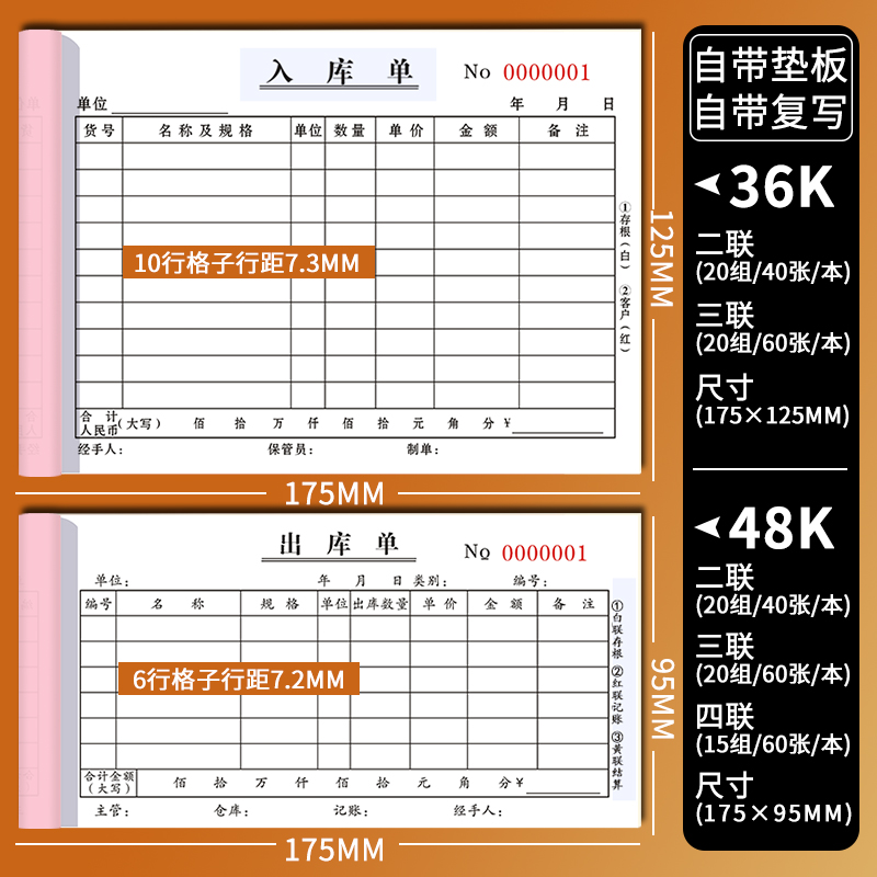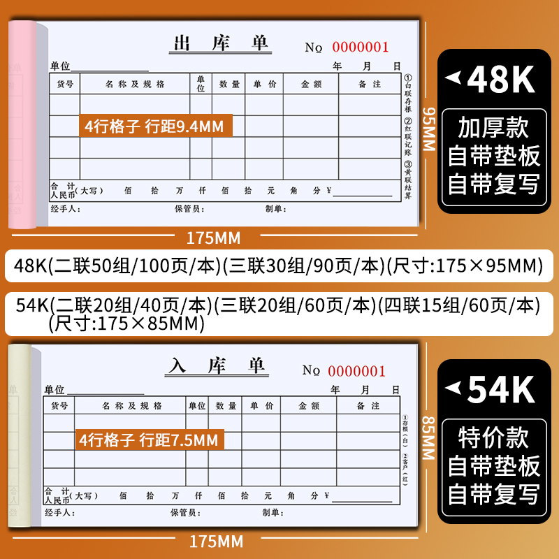 10/50本出库单入库单二联三联四联仓库车间领料收料单出入库单手写出货单进货单234联单据本无碳复写定制