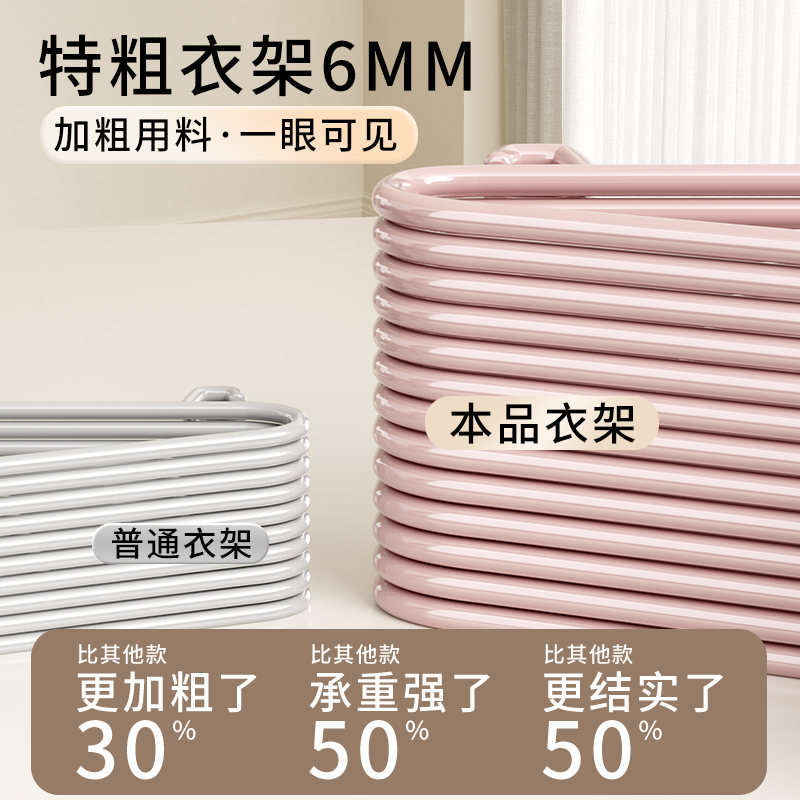 衣架加厚加粗家用挂衣加大宿舍用学生无痕防滑成人晾晒衣服架撑子