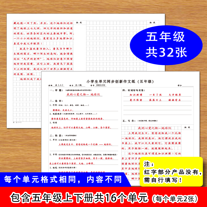 三四五年级语文人教版单元同步作文创新写作纸审题选材步骤好词好句采集写作方法作文写作文创新8开练习纸