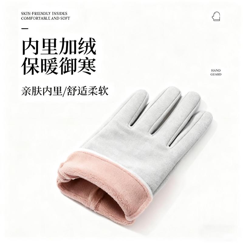 新款冬季保暖手套加绒加厚防寒触屏骑行开车户外运动德绒棉手套