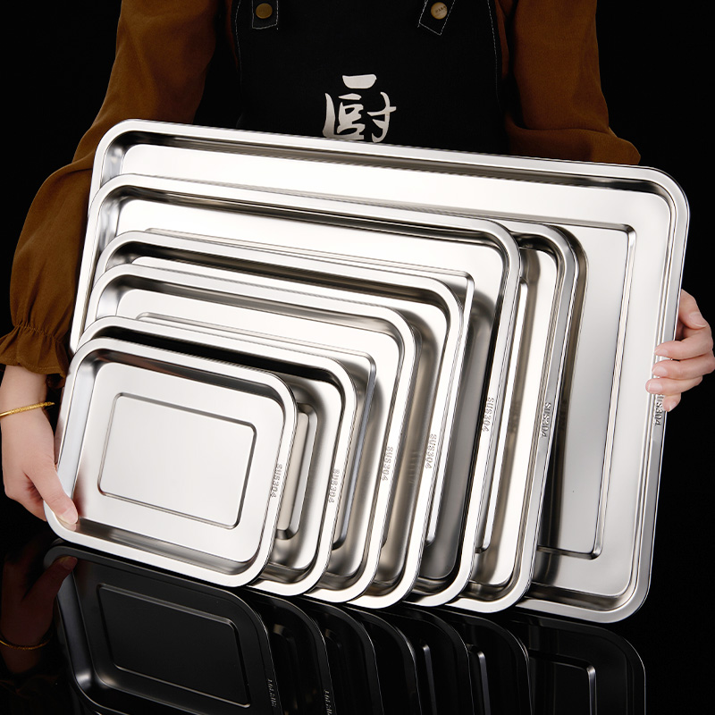 304不锈钢长方形托盘餐盘方盘烧烤菜盘平底蒸鱼盘子蒸饭盘肠粉盘