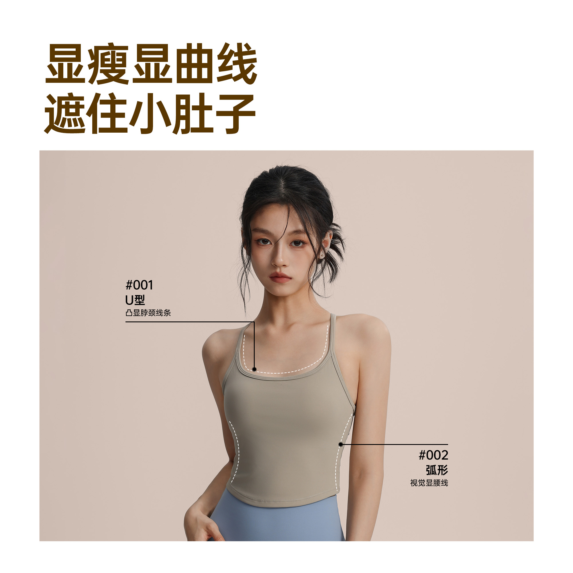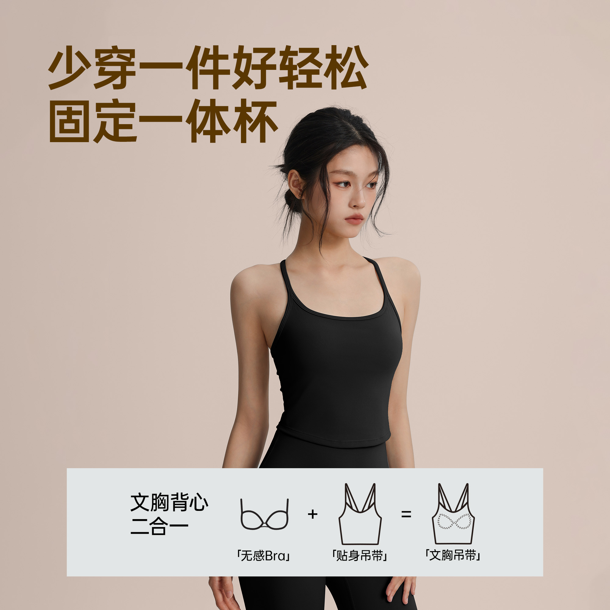 佑美运动内衣女士新款带胸垫一体式瑜伽背心健身外穿工字美背吊带