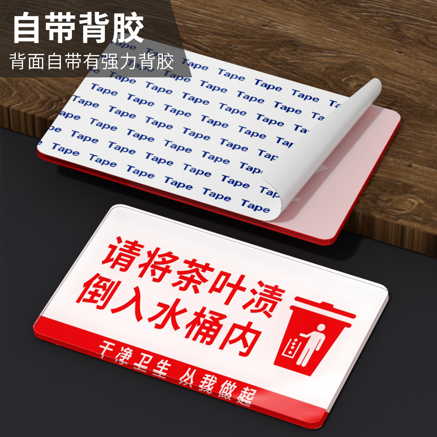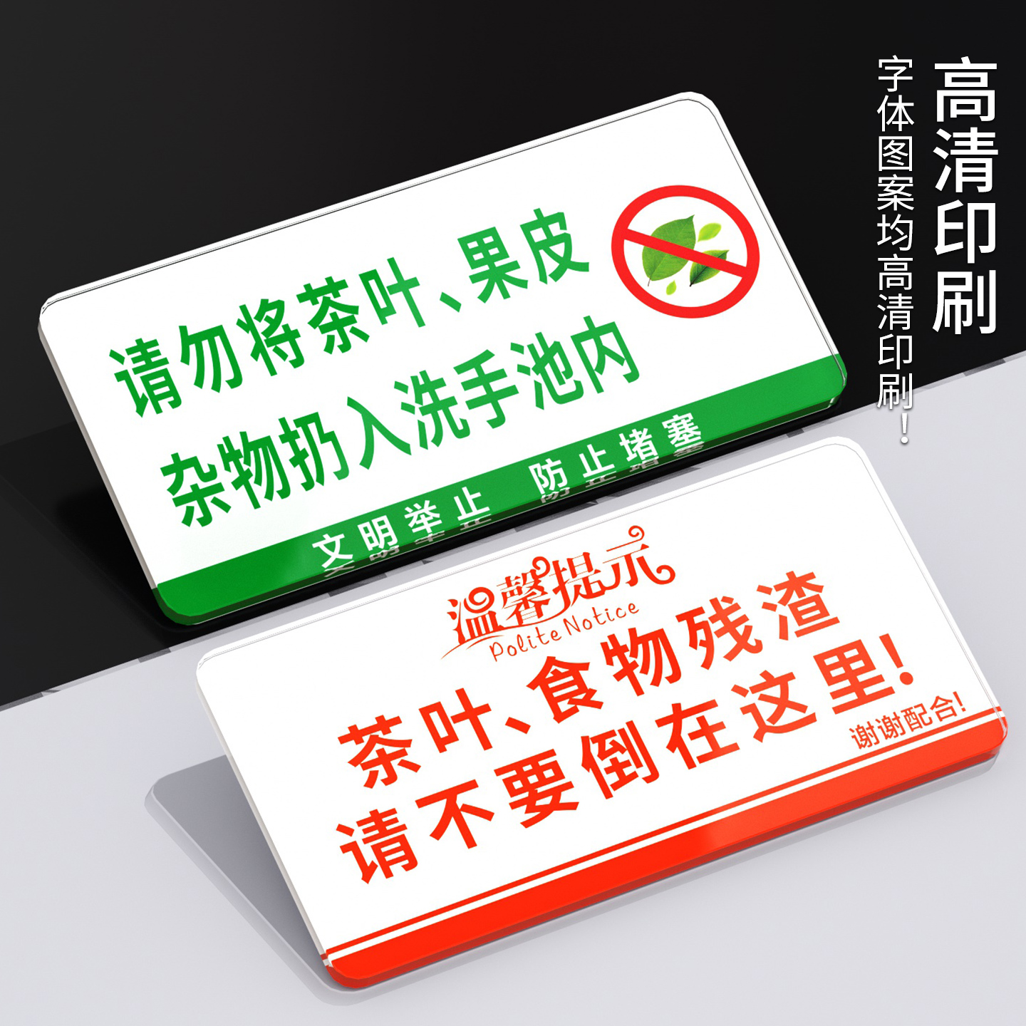 亚克力茶叶食物残渣请不要倒在这里温馨提示标识牌宾馆酒店标识贴请勿将果皮杂物扔入洗手池标贴防水标牌定制