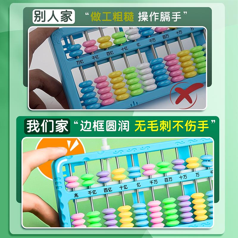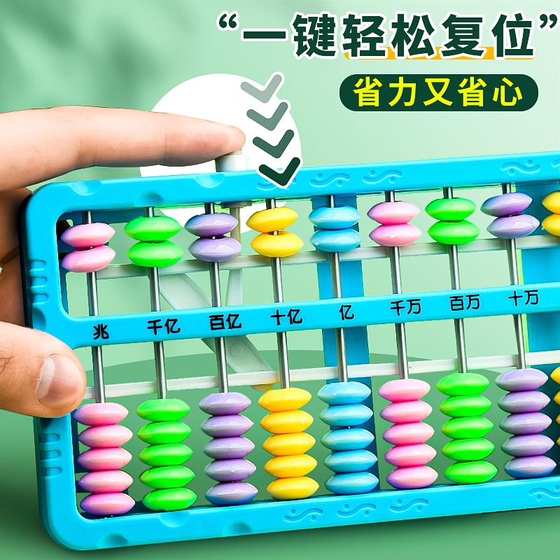 珠心算算盘小学生专用二年级下册儿童七珠13档数学小计数器四年级学生用十三行清零小算盘玩具人教版教具学具