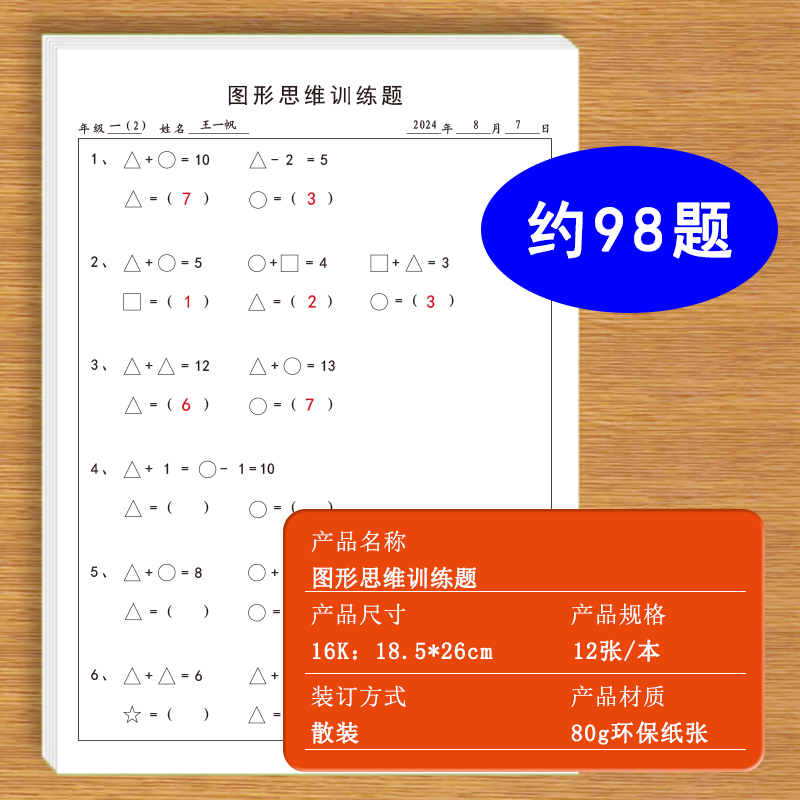 一年级通用图形思维训练题小学生数学找规律图形数字逻辑思维计算填空答案专项练习题