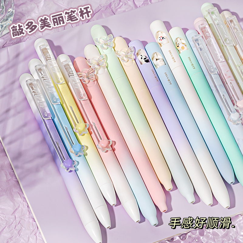 写给蝴蝶中性笔旋转出芯刷题笔渐变高颜值ins风女生款速干黑色水笔初中小学生专用好看圆珠笔顺滑水性签字笔
