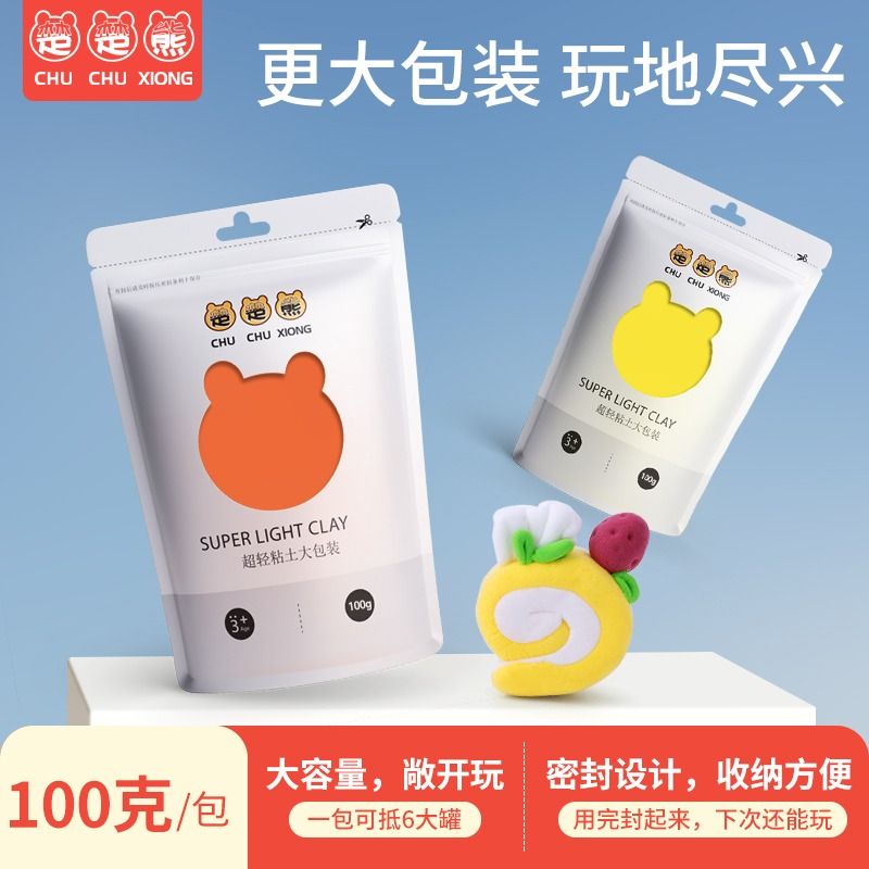 楚楚熊超轻粘土儿童无毒幼儿园白色黏土100g大包装单色补充装彩泥