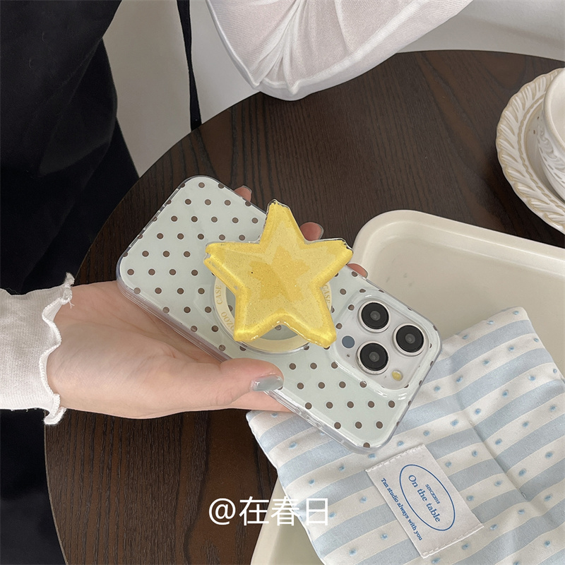 在春日ins韩系小众个性波点奶黄星星磁吸16pro适用苹果16promax全包15pro双层17promax中性保护壳14pro/16/13