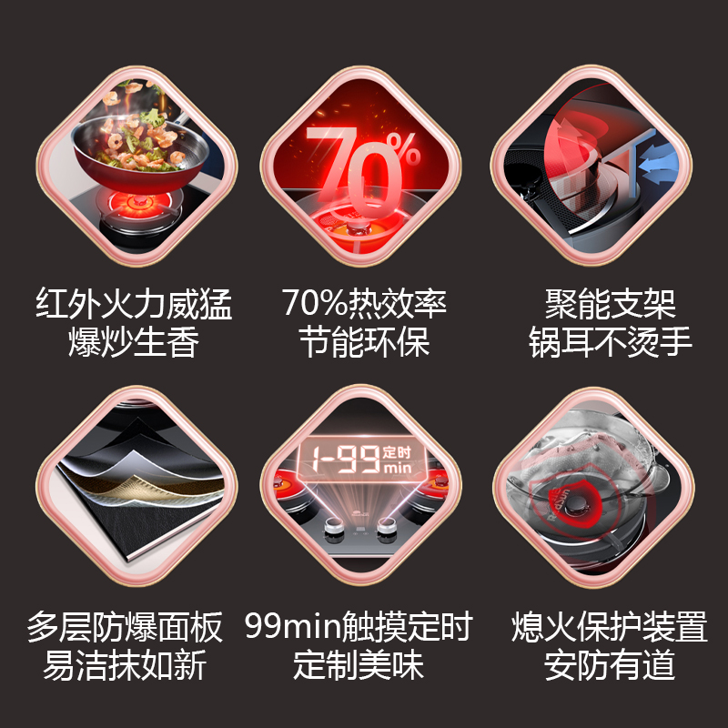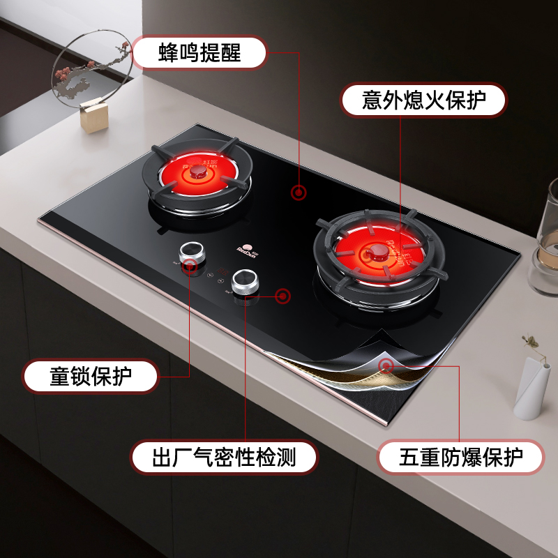 红日红外线燃气灶定时灶70%高热效家用灶具台嵌两用双灶EM618B/BP