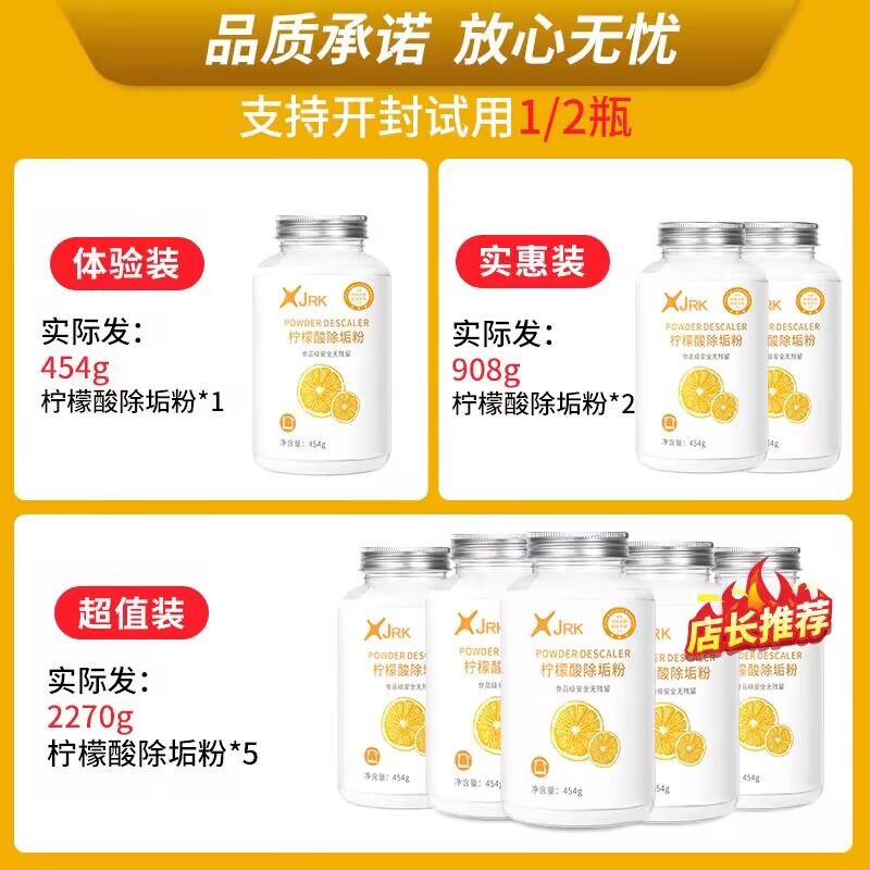 柠檬酸除垢剂电水壶清洗剂柠檬酸食品级水垢清洗茶垢去水垢清洁剂