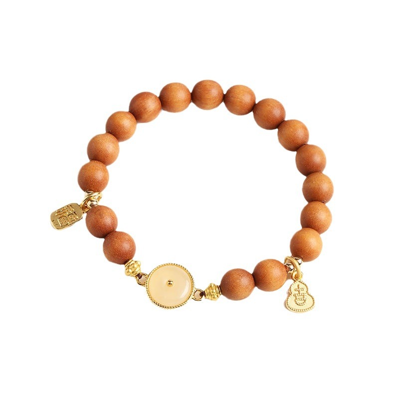 抱拙木香手串芭比檀香和田钰葫芦福牌新中式国风手链男女桃木