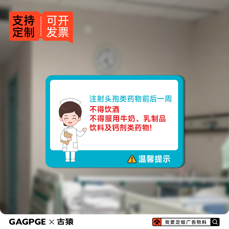 亚克力输液室大厅安全警示标语头孢类期间禁止饮酒温馨提示标识牌