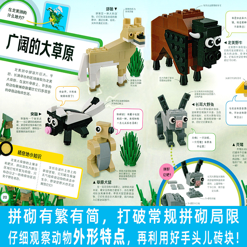 【赠限量乐高颗粒】DK乐高环游动物世界 罗娜·斯基恩 著 乐高创意拼砌书 儿童逻辑思维训练 识别图像化信息能力训练 乐高科普书