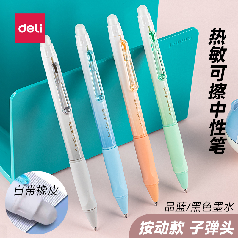 得力按动式可擦笔中性笔热敏热可擦摩易魔力擦橡皮晶蓝笔芯圆珠笔