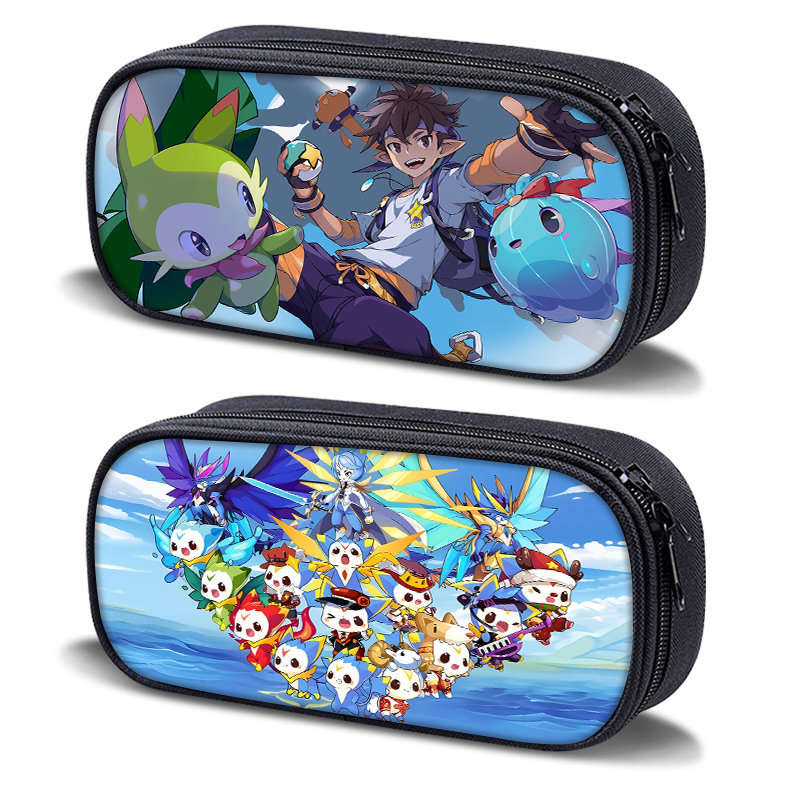 卡通学生笔袋文具袋洛克王国可丽希亚精美笔盒大容量三层防水帆布印花铅笔袋1-6年级文具笔盒国漫周边小学生