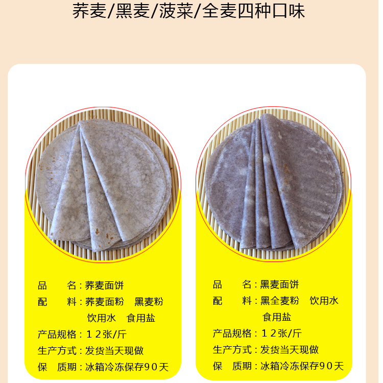 黑全麦卷饼荞麦饼皮0低脂山东杂粮煎饼早餐粗粮无加糖春饼皮薄饼