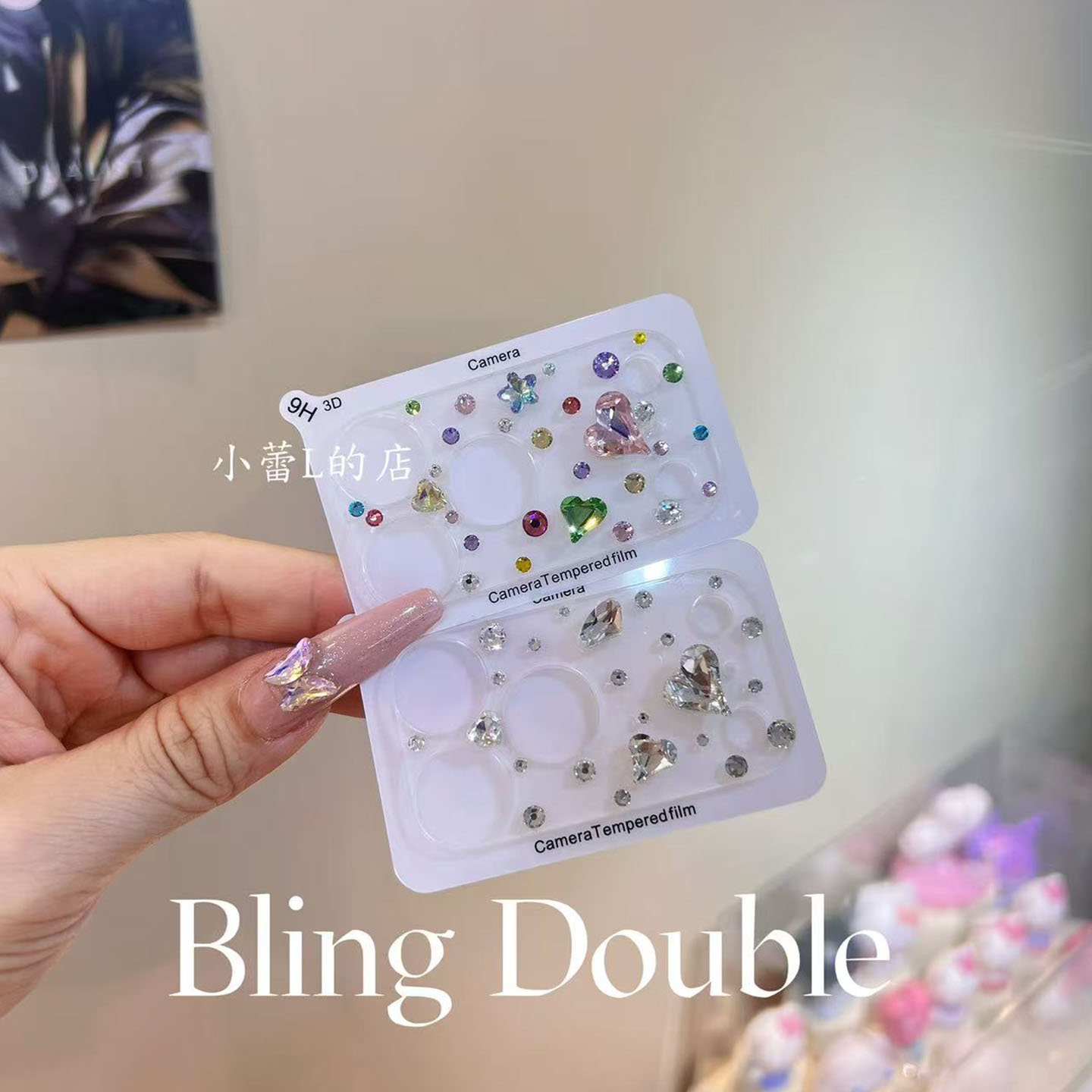 多巴胺银白一片式水钻镜头膜适用苹果17promax/16pro/14/13华为