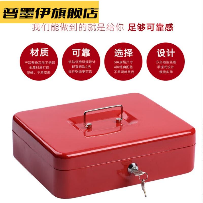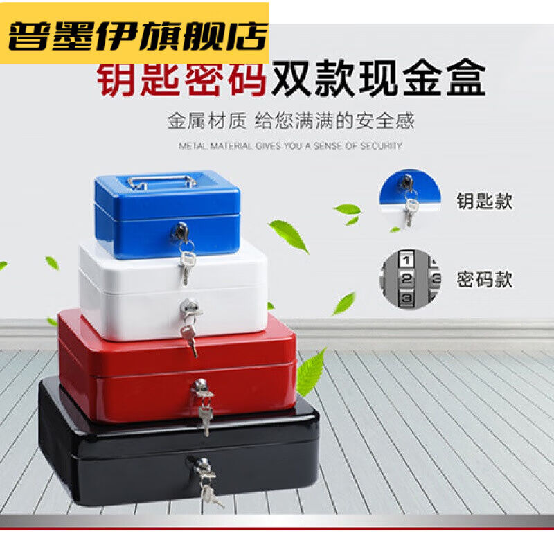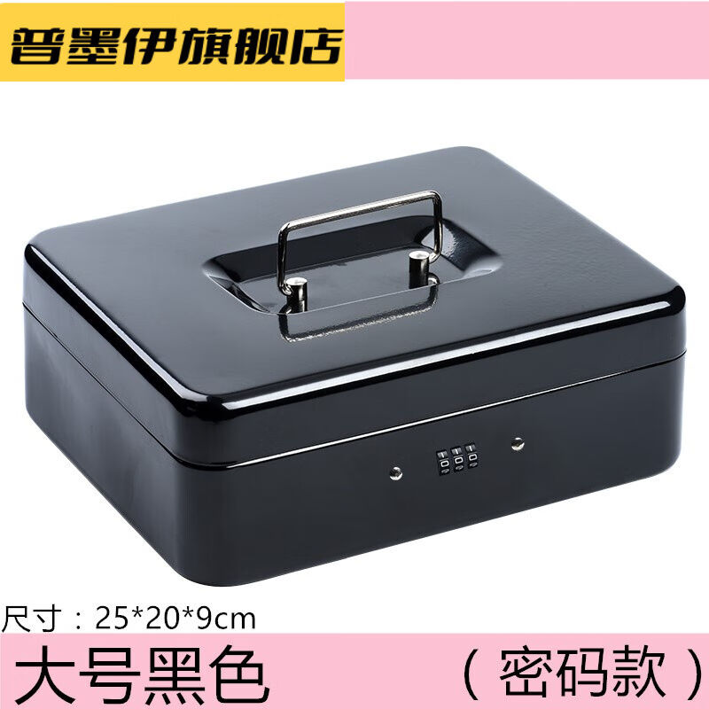特大号手提钱箱密码箱机械保险箱保险柜收银箱带锁4纸大号钥匙黑