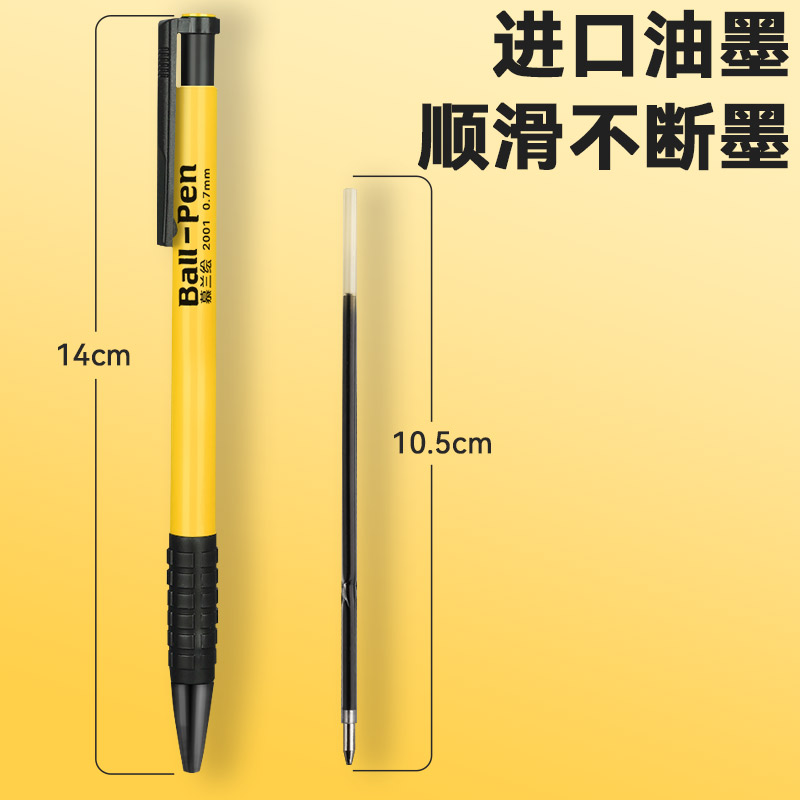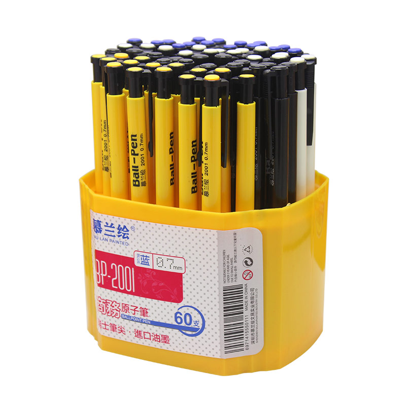 圆珠笔 慕兰绘100支0.7mm批发文具用品按压式黑色学生用子弹头多色油性笔按动蓝色笔芯原子笔办公经典签单笔
