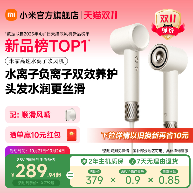 政府补贴】小米官旗米家高速水离子电吹风家用恒温负离子风筒礼物
