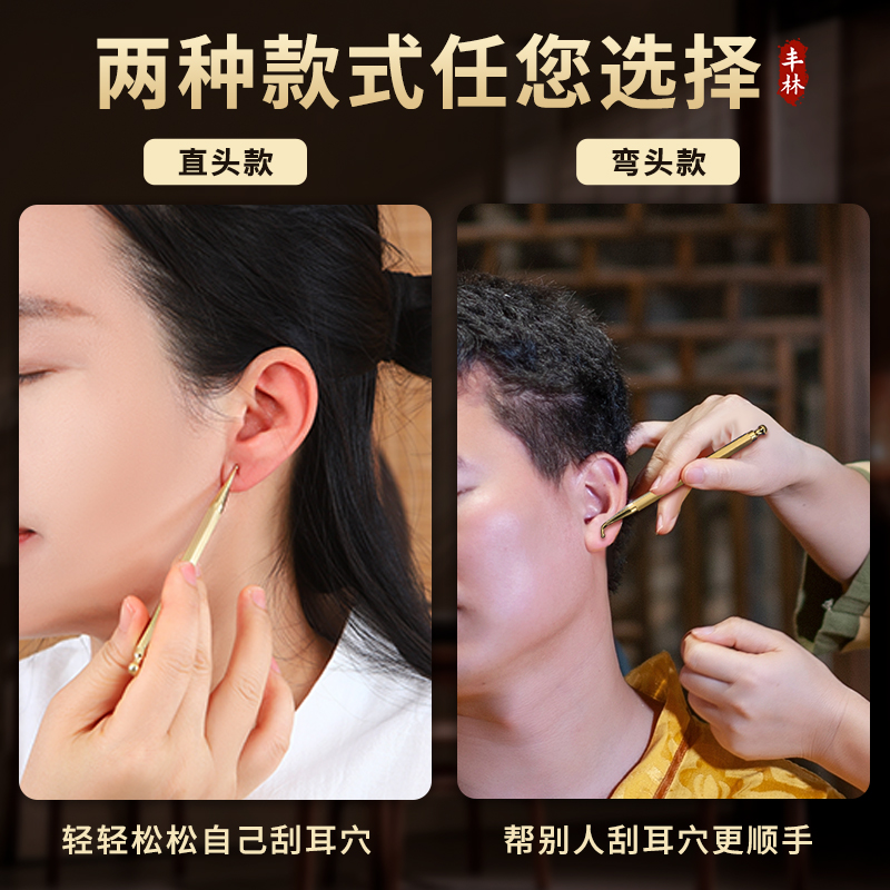 黄铜穴位按摩棒双头点穴笔耳部面部疏通经络耳穴探针拨筋按摩刮痧
