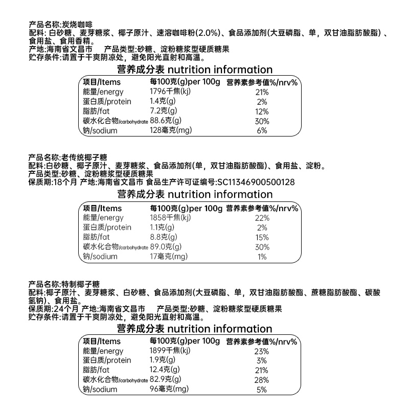 春光海南特产炭烧咖啡糖椰子糖什锦糖果伴手礼零食小吃特浓传统