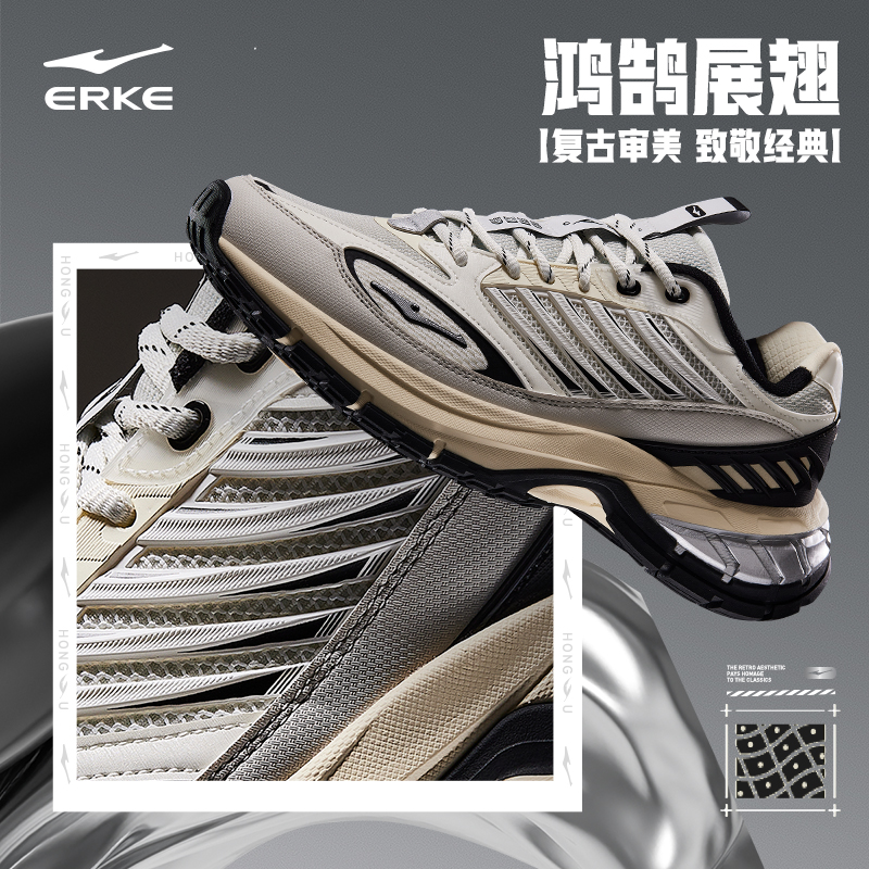于适鸿星尔克跑鞋鸿羽复古跑步鞋秋冬千禧男鞋运动鞋软底女鞋