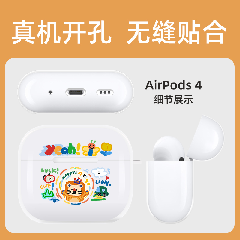 狮子涂鸦适用airpods4保护套4代降噪透明高级第四代新款pro2创意可爱3代苹果无线蓝牙耳机壳女款2代保护壳