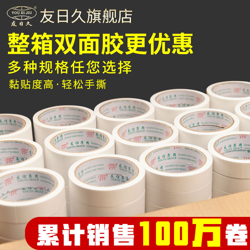 友谊强力双面胶棉纸双面宽胶带厂家批发强力固定文具办公用品学生用手工棉纸手撕健康环保儿童手工高粘双面胶