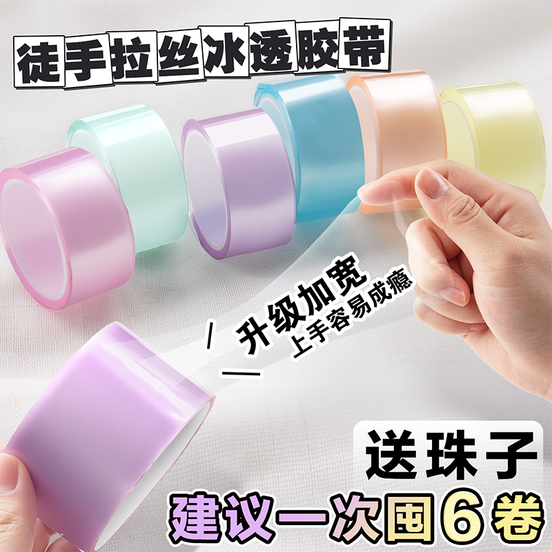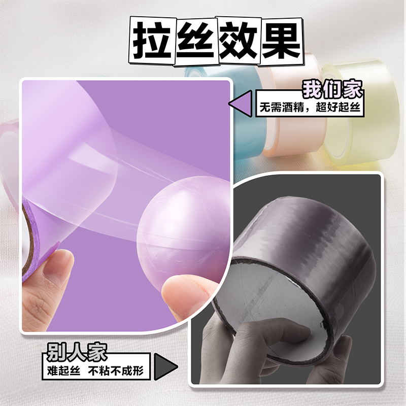 大号粘粘球胶带diang球胶带学生DIY解压徒手起丝做水球胶布透明彩色沾沾球网红巨好黏黏小球专用透明胶卷超宽