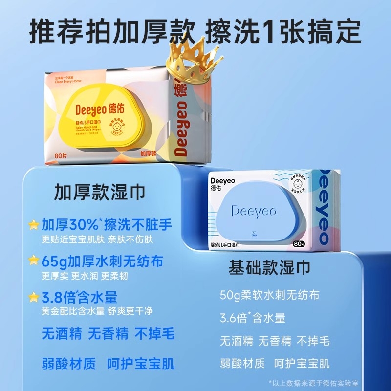 德佑婴儿手口专用湿巾新生宝宝湿纸巾实惠装80抽大包清洁杀菌高级