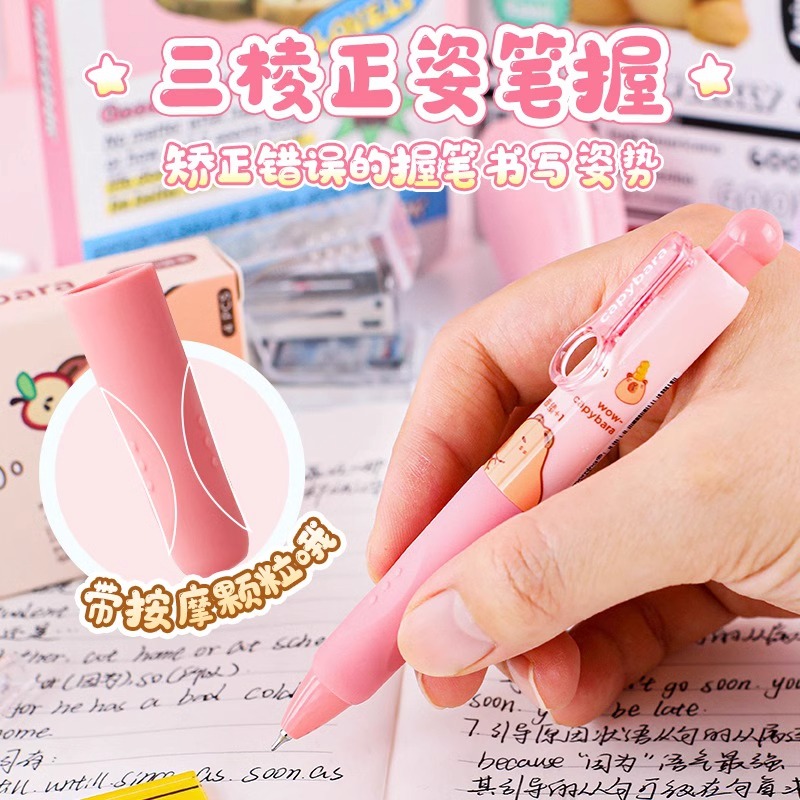 卡皮巴拉跳跳口袋笔会变脸的笔高颜值可爱迷你创意按动中性笔顺滑速干刷题笔ins风正姿软握双珠CS头0.5签字笔