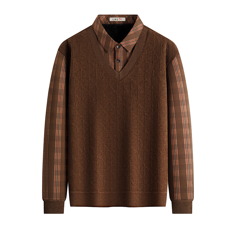 恒源祥冬季假两件毛衣男士加绒加厚羊毛针织衫中老年爸爸保暖上衣