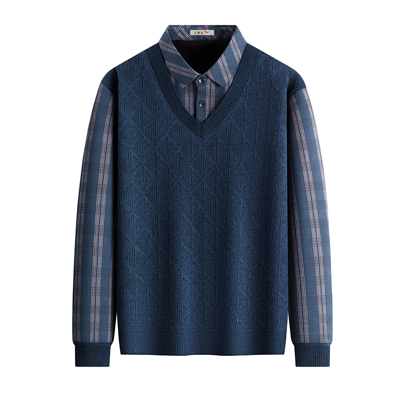 红蜻蜓中年男士毛衣加绒加厚假两件新款保暖内搭爸爸装针织打底衫