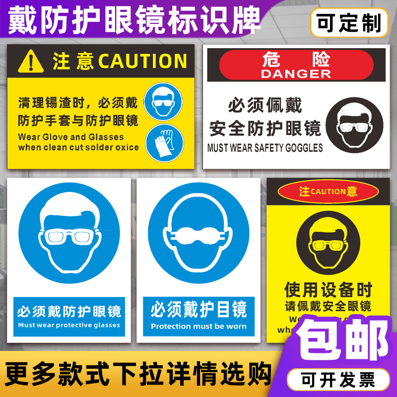 必须戴防护眼镜标识牌工厂车间安全操作业戴遮光护目镜提示牌定制