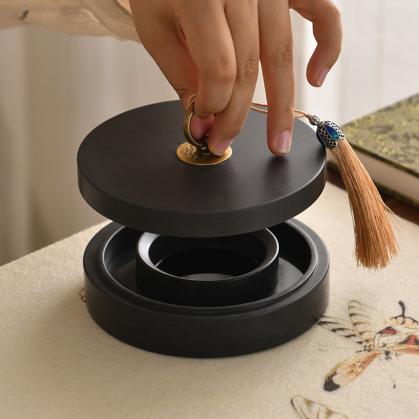 赵北火锅砚带盖砚台书法专用不干墨罗纹砚台天然原石砚毛笔字专用初学者砚台双圈保湿防蒸发砚台可研墨研台