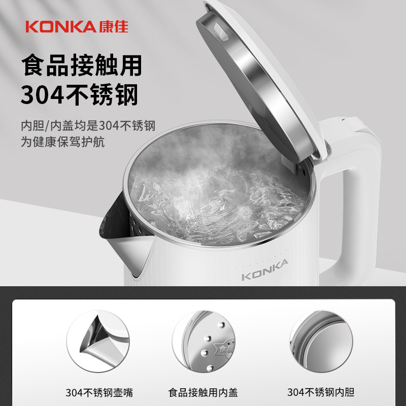 康佳电热水壶电水壶烧水壶家用开水壶自动断电保温恒温内胆不锈钢