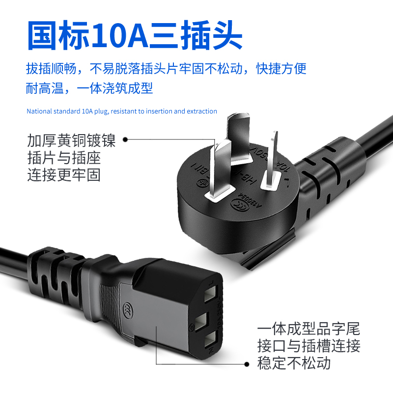 10A国标电饭煲麻将机电源线三孔三芯带插头通用电饭锅1.5平方主机