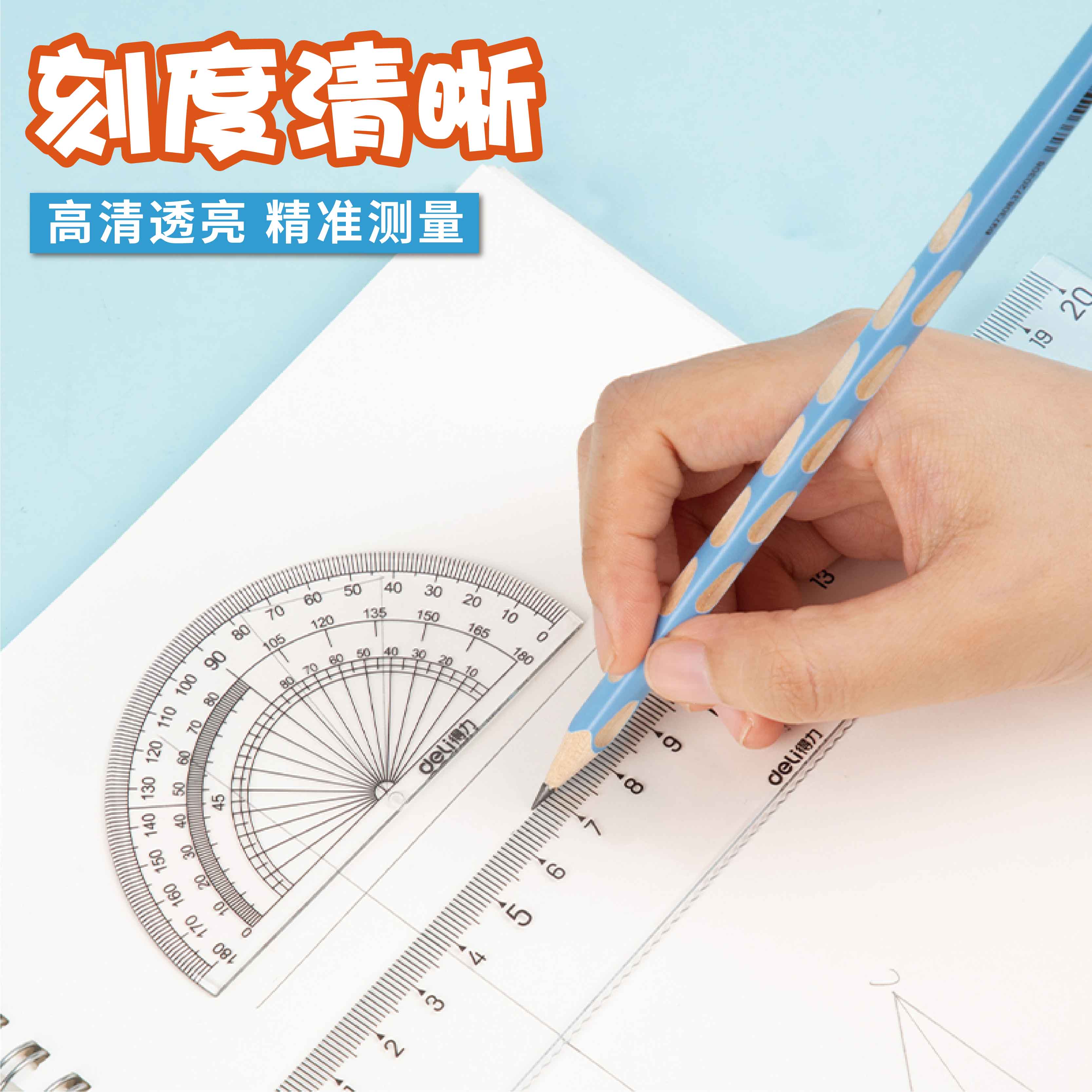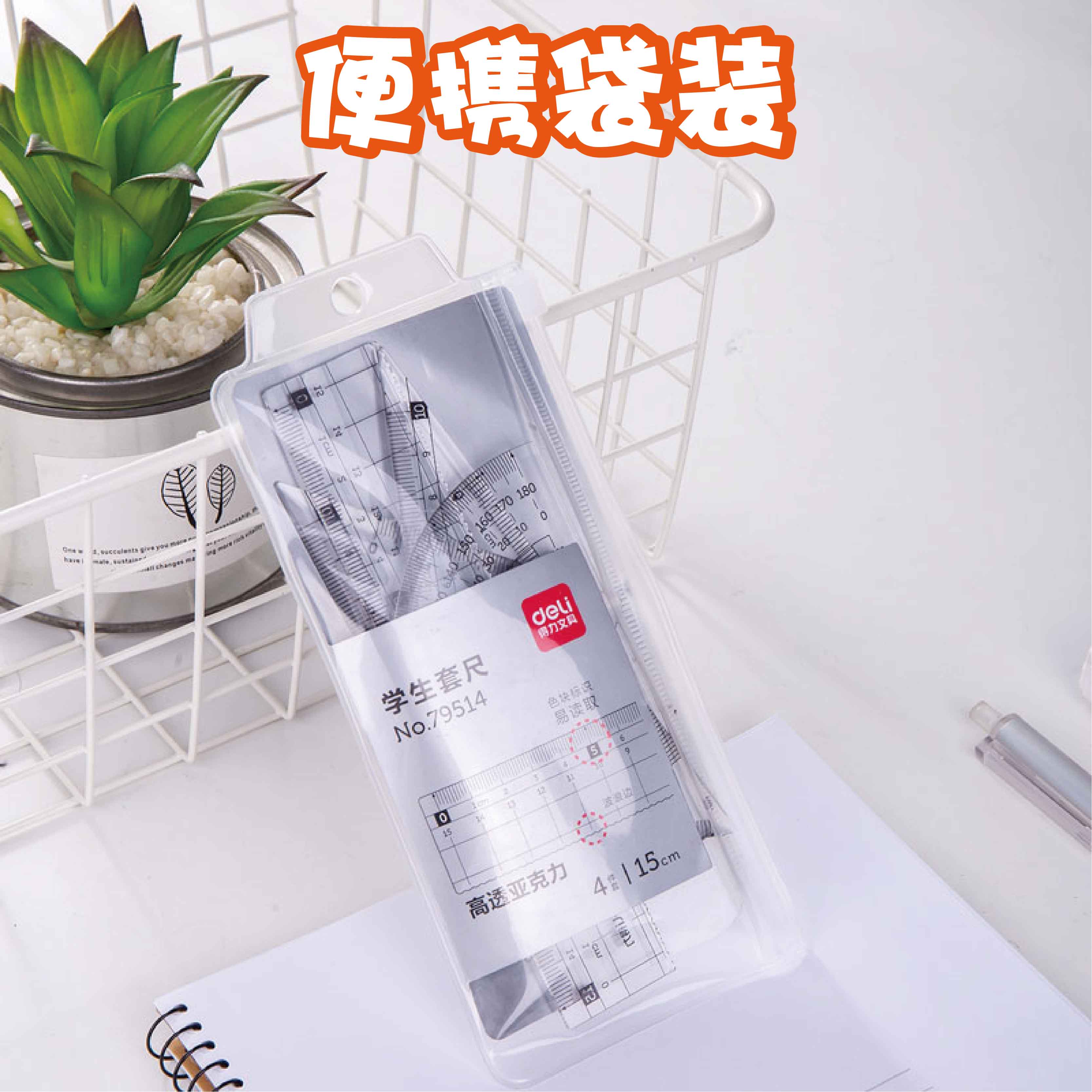 得力套尺四件套学生用考试透明亚克力尺子套装多功能可爱内含直尺三角板量角器考试小学高中中考高考文具