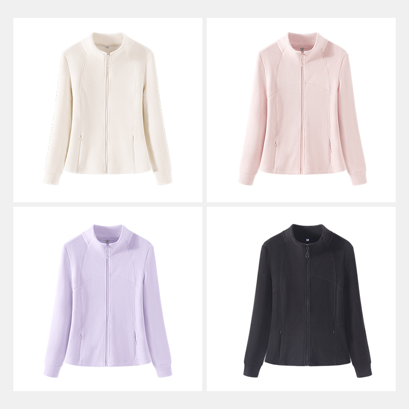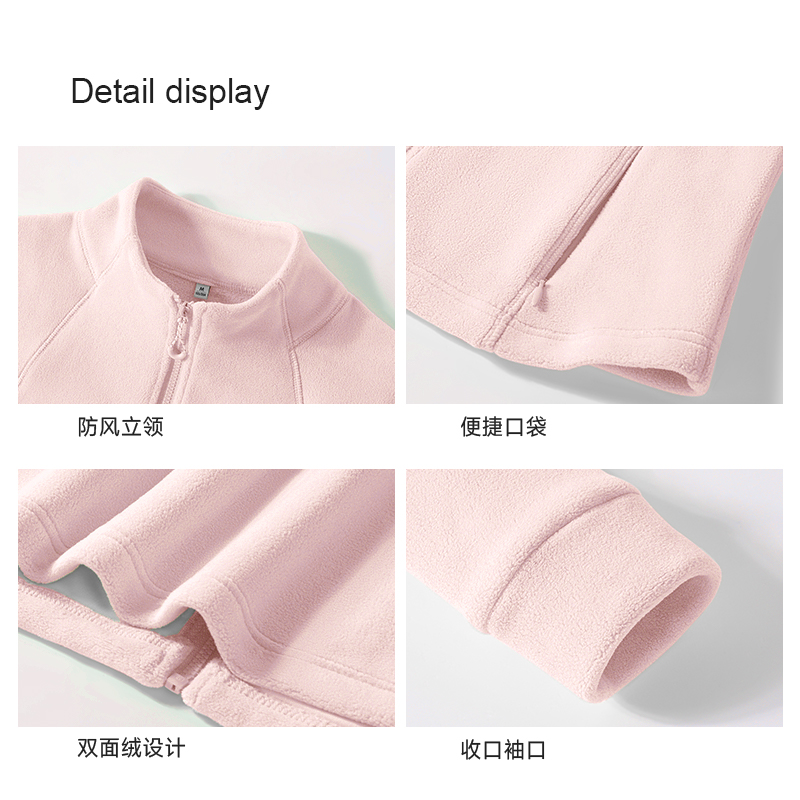KYV真维斯摇粒绒外套女粉色冲锋衣内胆秋冬加绒抓绒卫衣立领上衣
