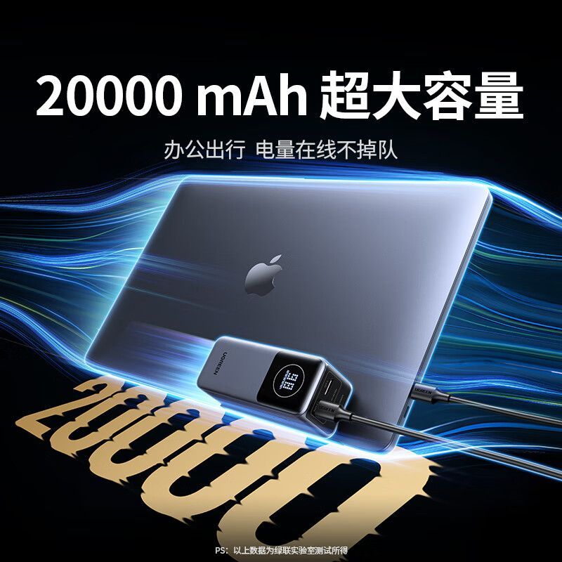 绿联2025新款100W充电宝pro大容量20000毫安PD快充适用iPhone16